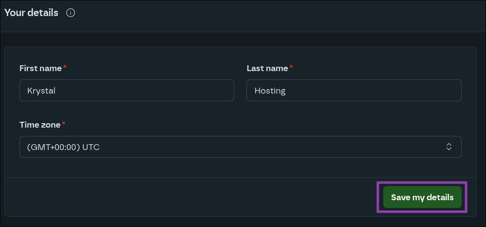 - From here, you can update your name and once done, click "Save my details"