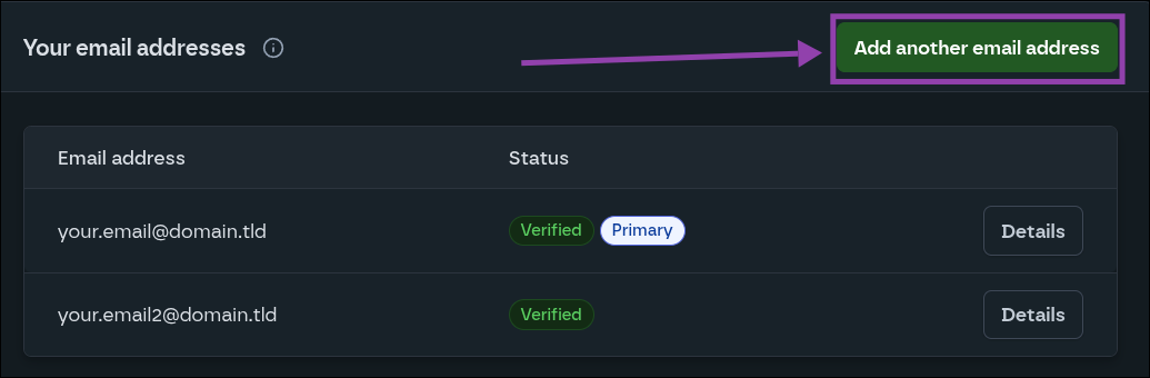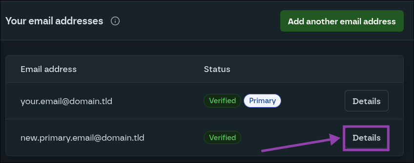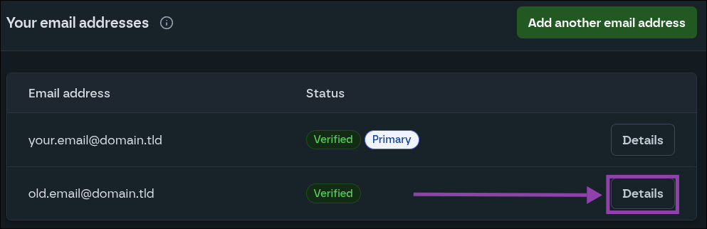 - Select the "Details" button beside the email address you would like to remove.