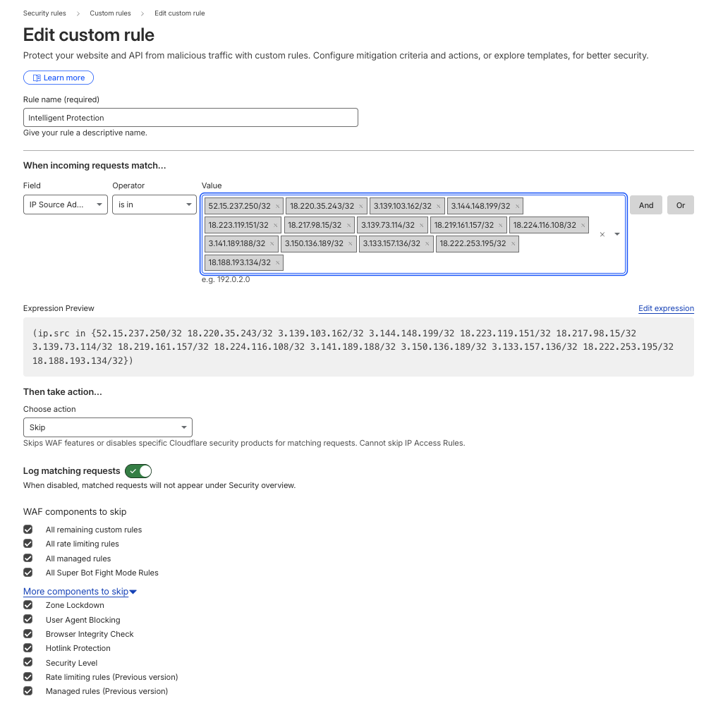 Our Intelligent Protection communicates with your website’s server to scan, detect, and prevent vulnerabilities in real time. Occasionally, Cloudflare’s firewall rules or rate-limiting policies can interfere with these connections. By whitelisting the IPs below, you ensure reliable communication between Patchstack and your site.