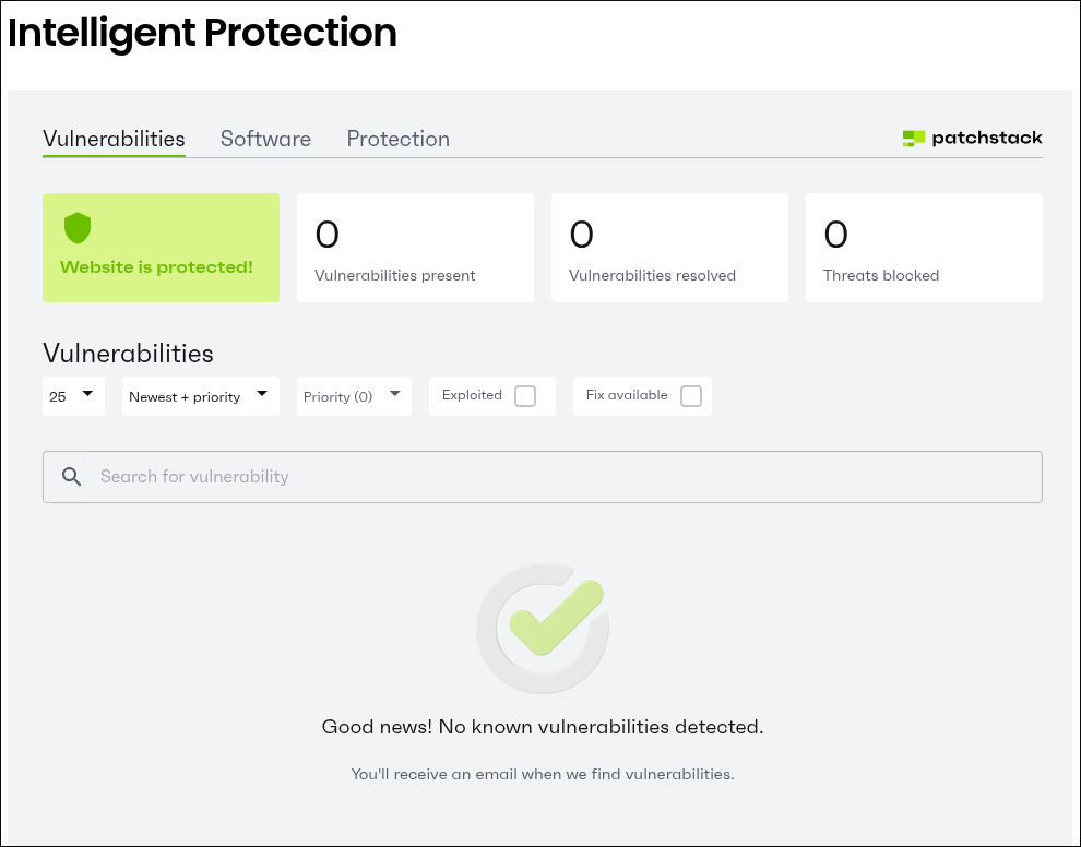 Intelligent Protection is a security system built specifically for WordPress, powered by Patchstack. It protects sites against vulnerabilities in plugins, themes, and WordPress core. Rather than scanning for malware after something goes wrong, it blocks known exploits before they can run.