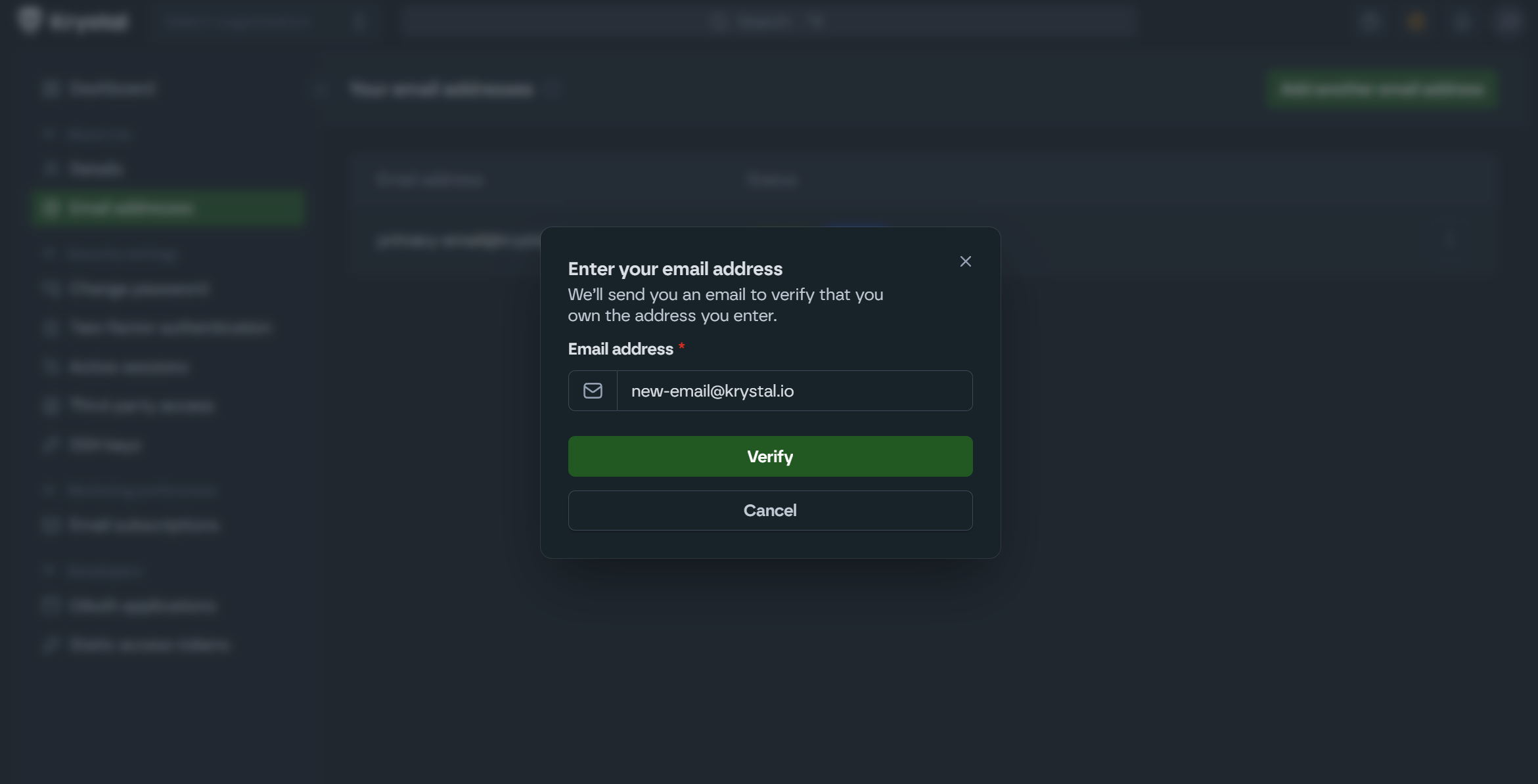 How to Update Your Email Address in Krystal Identity