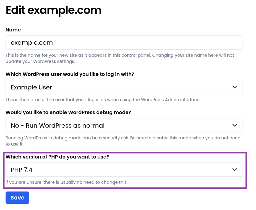 This article describes how to change the PHP version in your Managed WordPress dashboard.