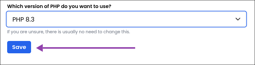 - Scroll down to the "Which version of PHP do you want to use?" section